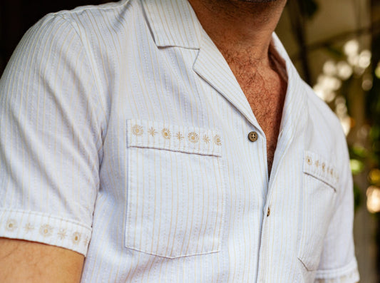 Double Cloth Flannel Pearl Snap Ronan Plaid - Cream