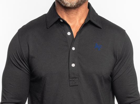 Air Force Jacquard Long Sleeve Range Polo - Interlock - Black