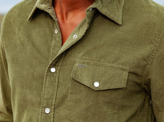 Corduroy Pearl Snap Olive Branch