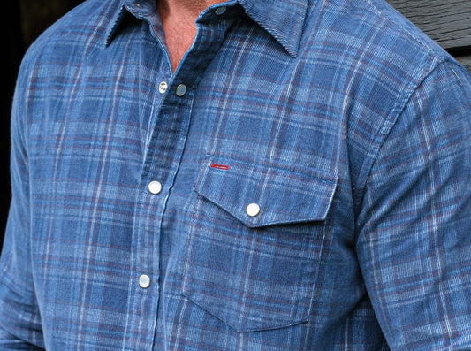 Double Cloth Flannel Pearl Snap Ronan Plaid - Brown