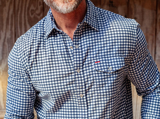 Spring Weight Corduroy Pearl Snap Gingham Print - Vintage Navy