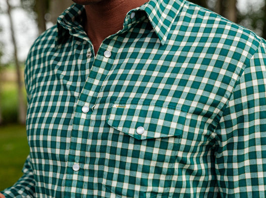 Chill-Knit Plaid Pearl Snap Green Jacquard