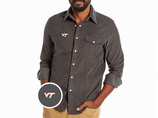 Virginia Tech Corduroy Pearl Snap - VT - Charcoal