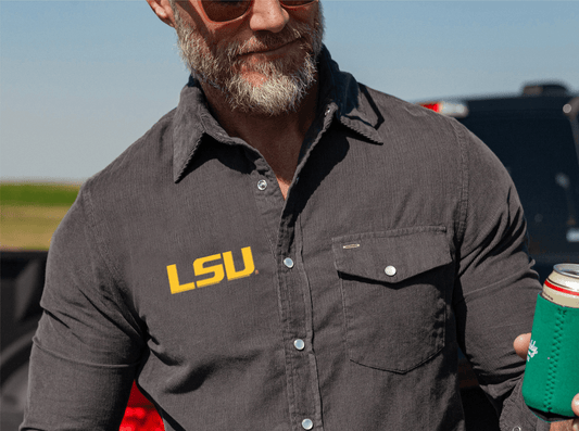 LSU Corduroy Pearl Snap - LSU - Charcoal
