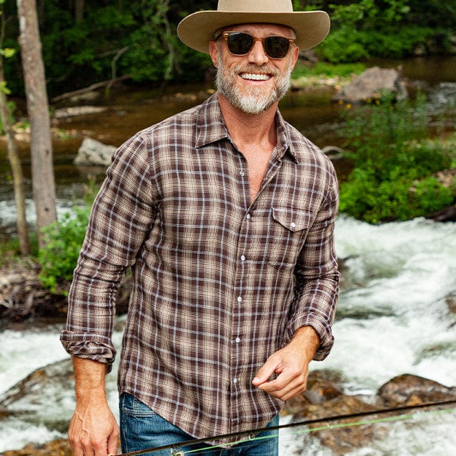 Double Cloth Flannel Pearl Snap Ronan Plaid - Cream