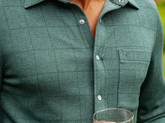 Chill-Knit Plaid Pearl Snap Green Jacquard