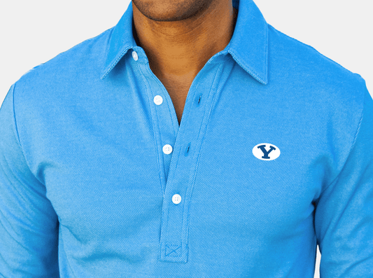 BYU Jacquard Long Sleeve Range Polo - Oval - Blue