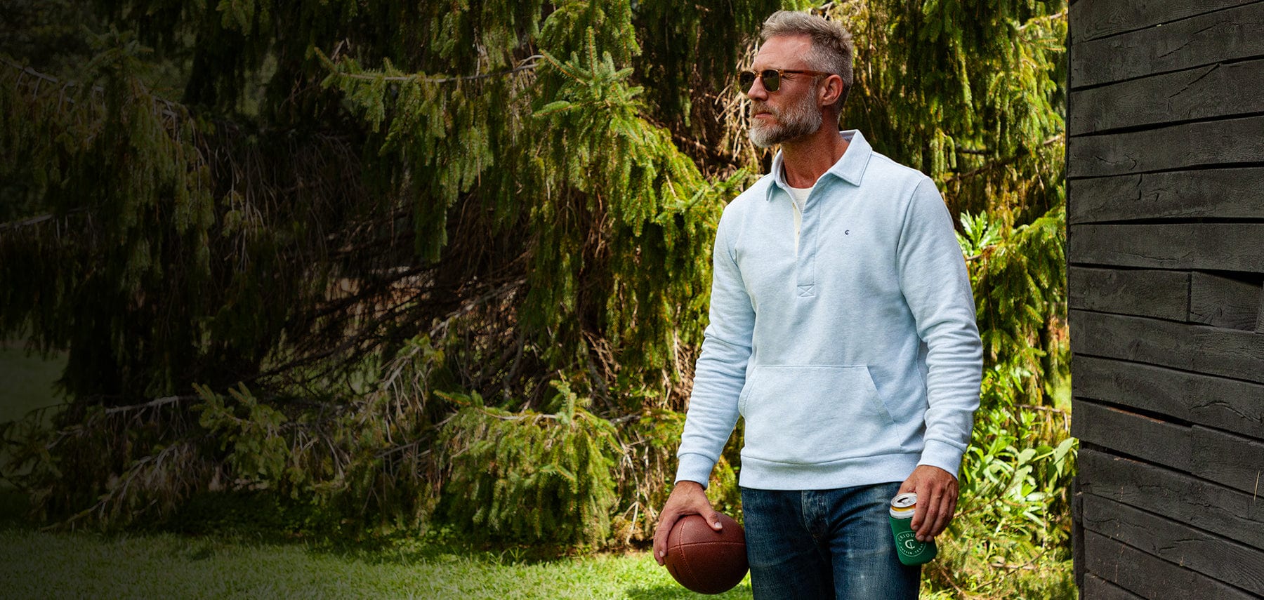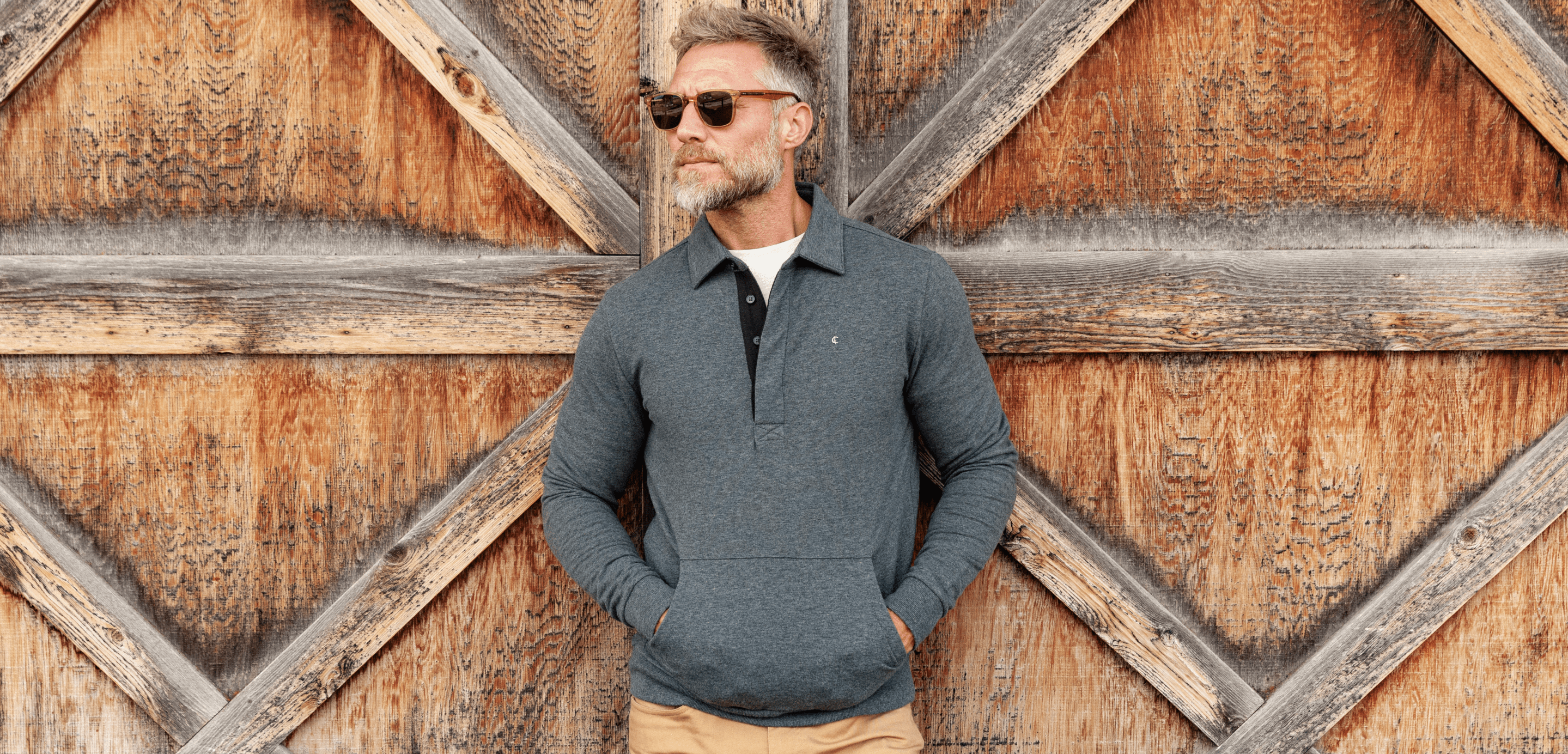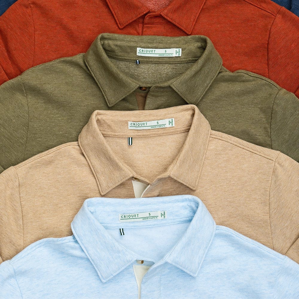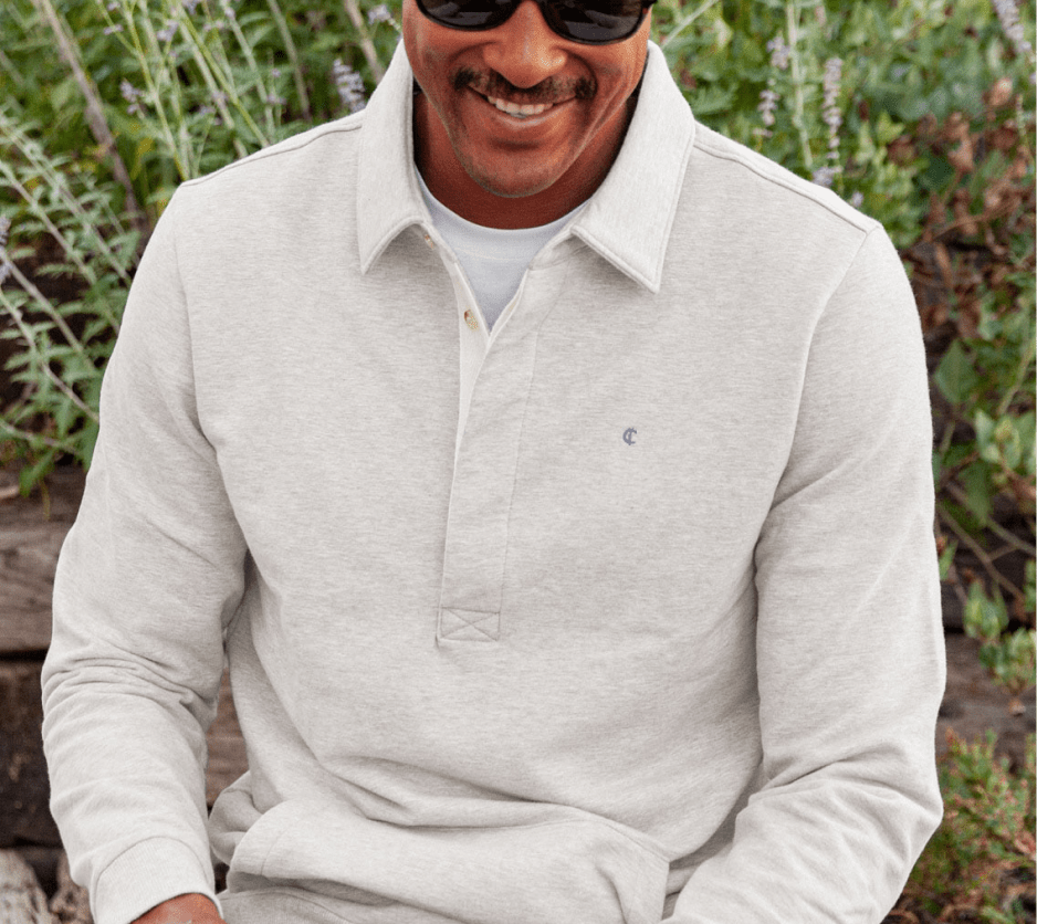 We took the sweatshirt and worked our Criquet magic on it - giving it a collar, adding in some rugby details, and using a primo soft fleece fabric. It’s got the same cozy comfort of your favorite sweatshirt, but still looks like you’ve got your you-know-what together, and is the easiest style upgrade since matching socks.