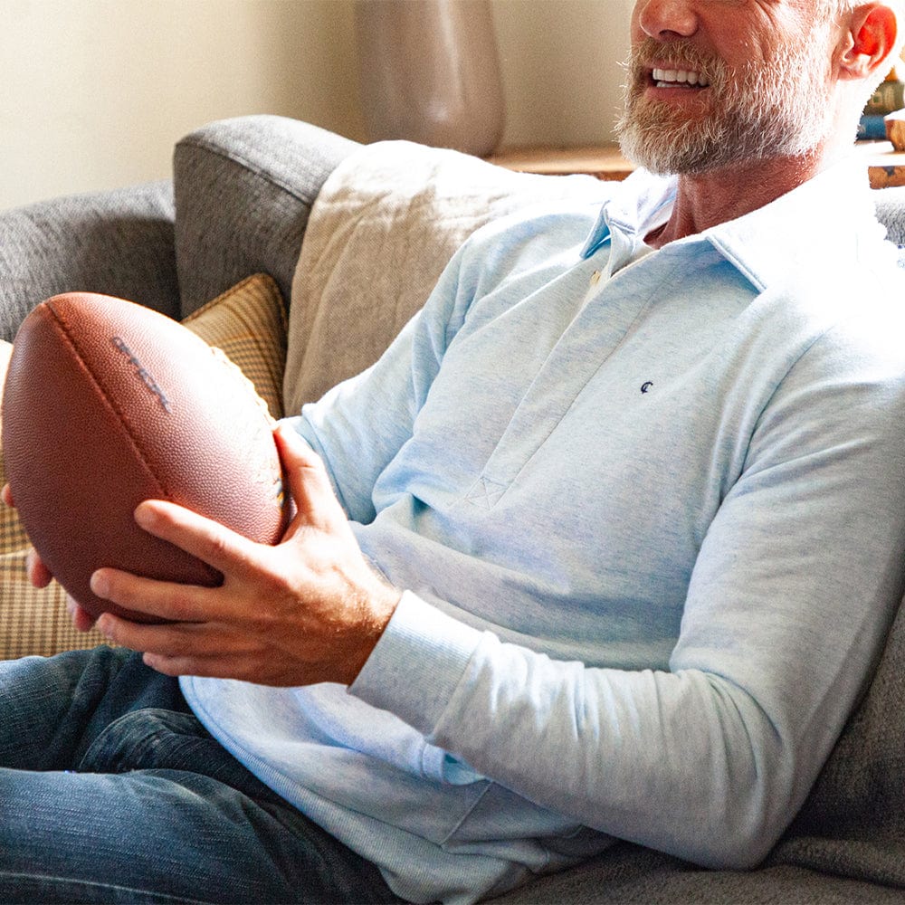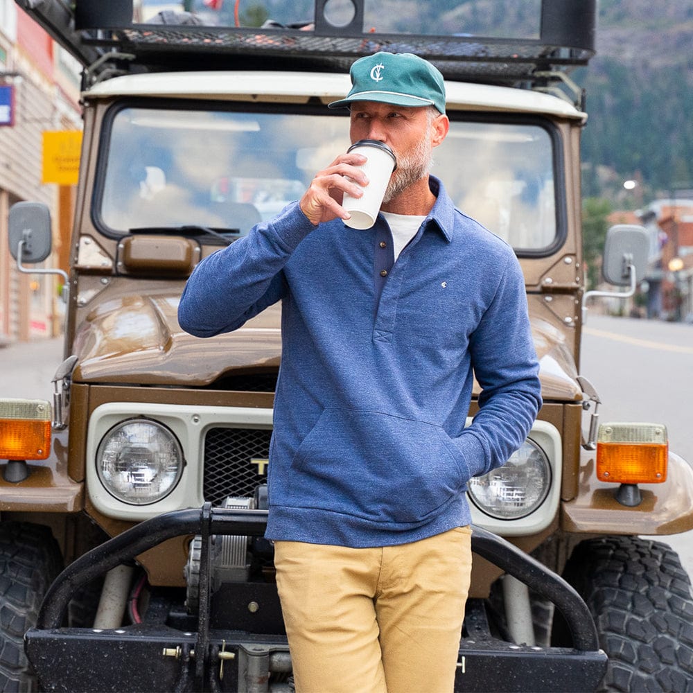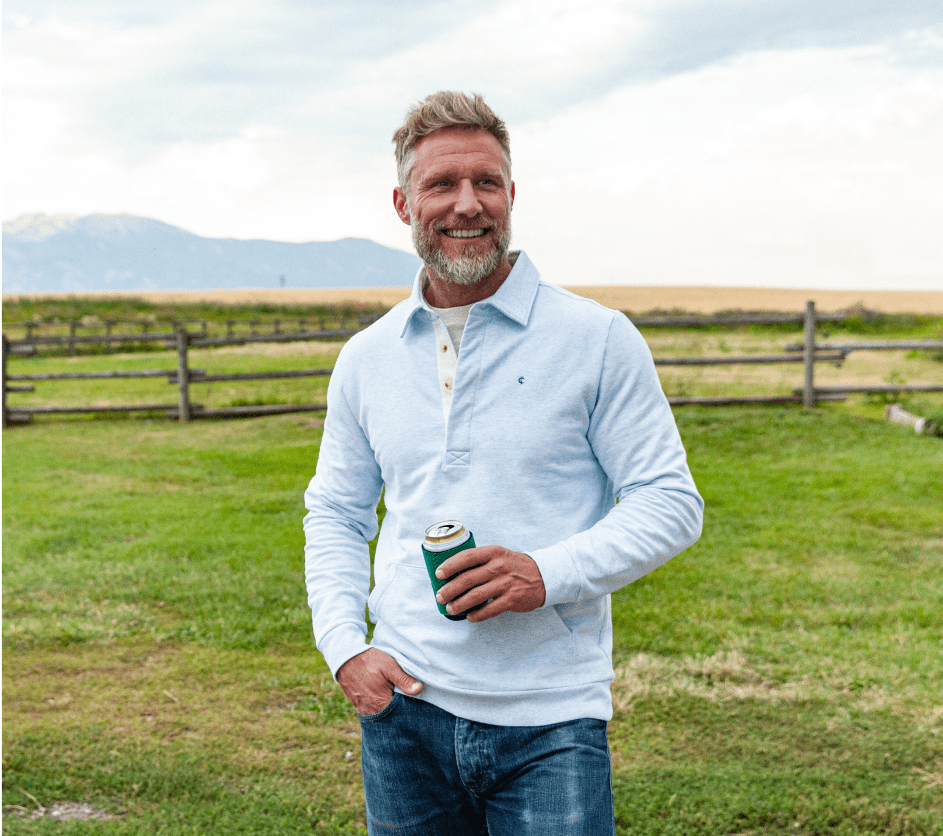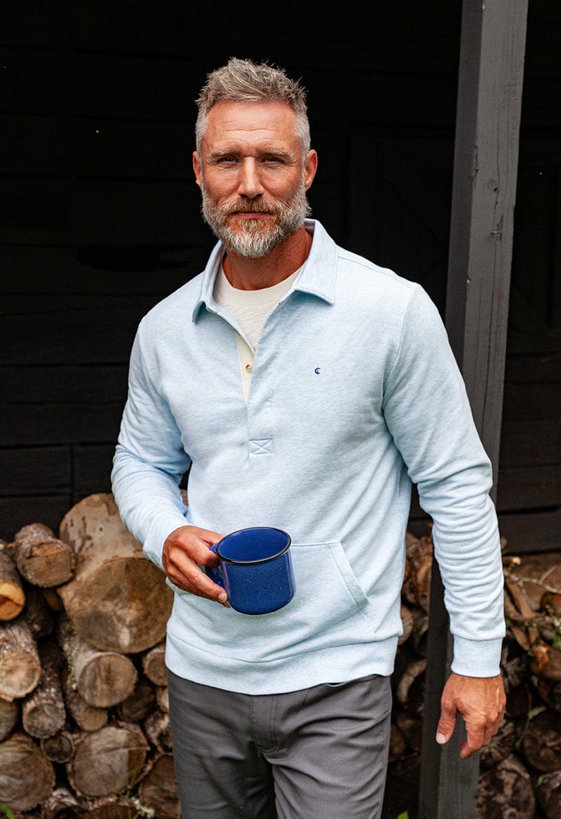 We took the sweatshirt and worked our Criquet magic on it - giving it a collar, adding in some rugby details, and using a primo soft fleece fabric. It’s got the same cozy comfort of your favorite sweatshirt, but still looks like you’ve got your you-know-what together, and is the easiest style upgrade since matching socks.