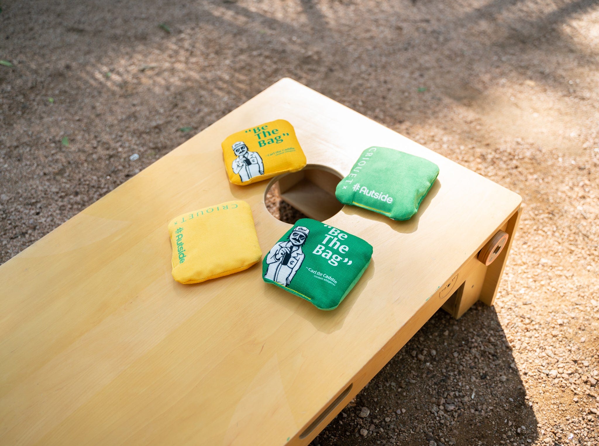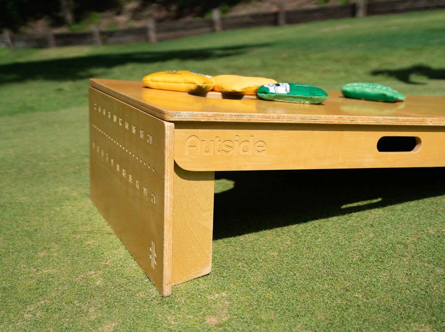 Our Bags & Boards offers a combination of elegant design and quality construction that manifests the most epic cornhole game ever. This set includes board innovations that consider storage, portability, and game scoring, as well as bags that are beautifully-crafted, dual-sided, and environmentally sustainable. This set takes cornhole to a new level.