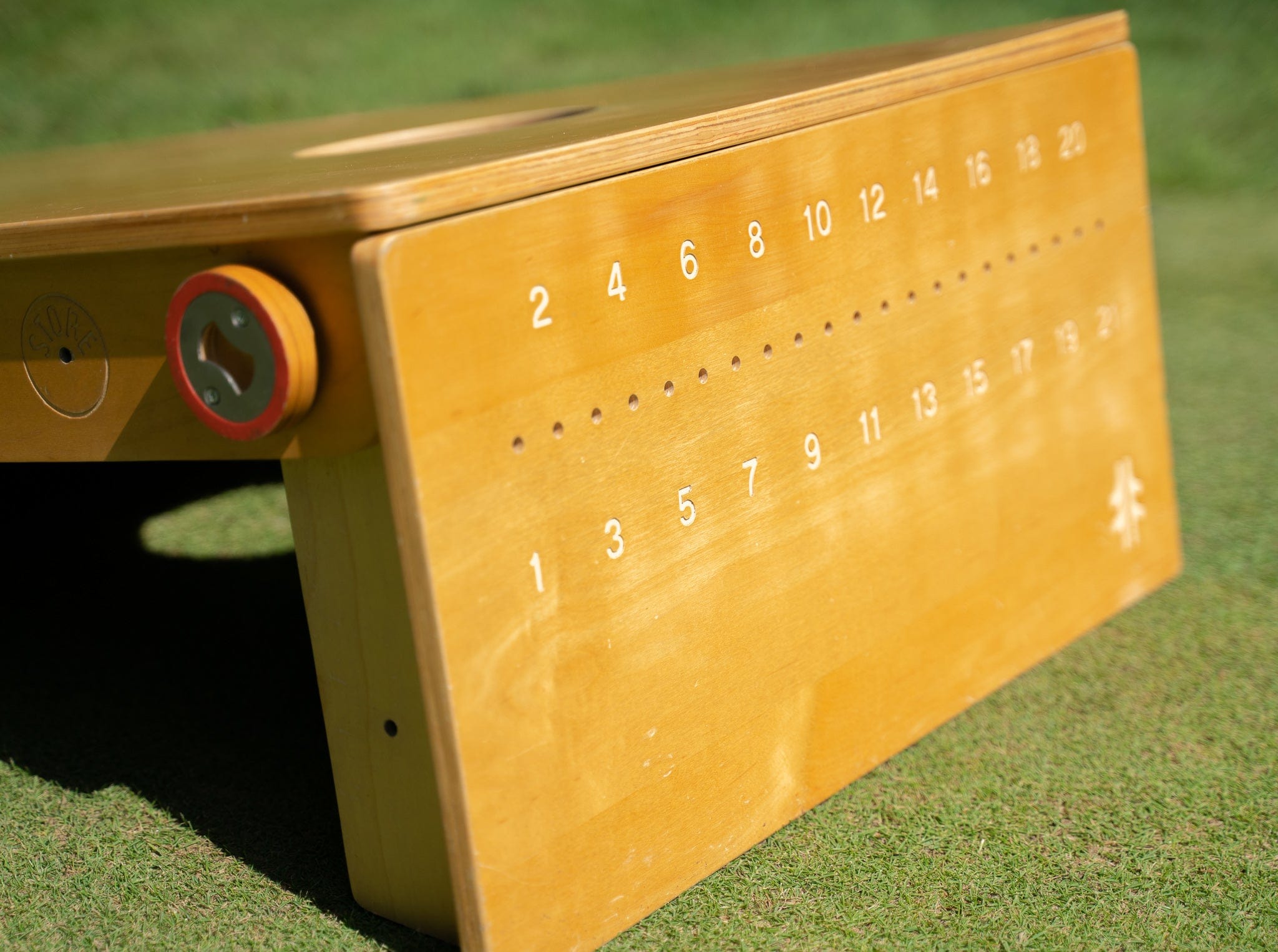 - Scoring Pins for storage, set-up, and play (also a bottle opener)