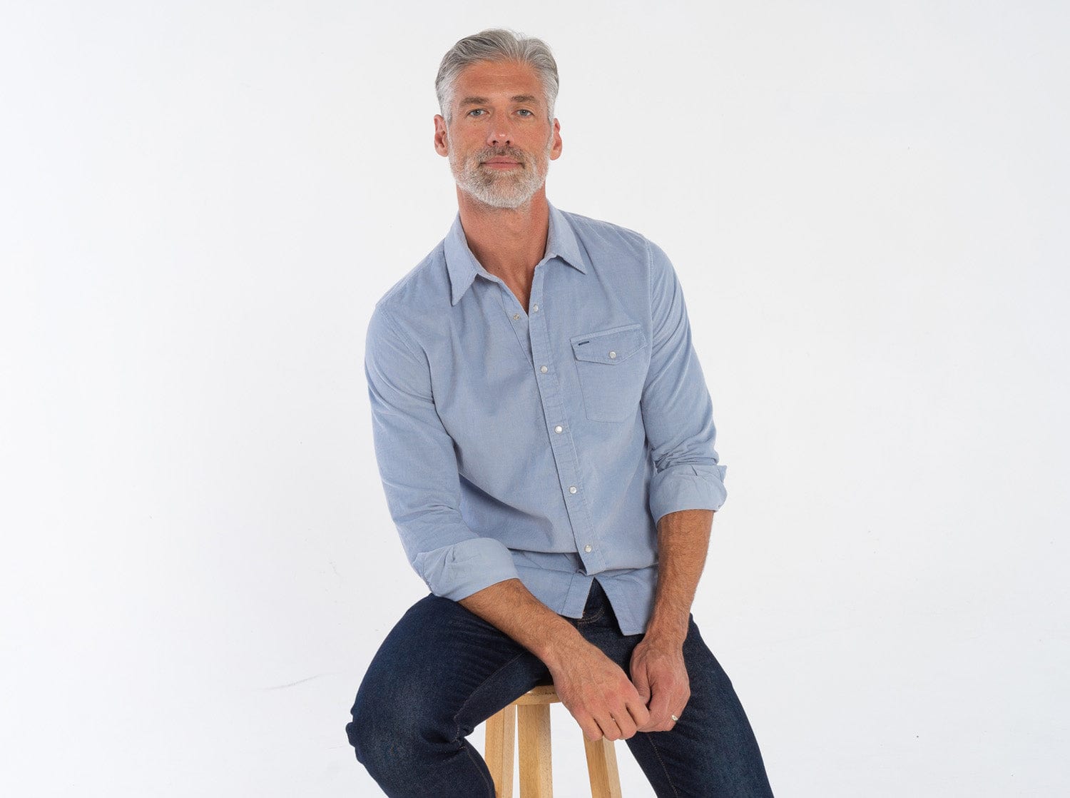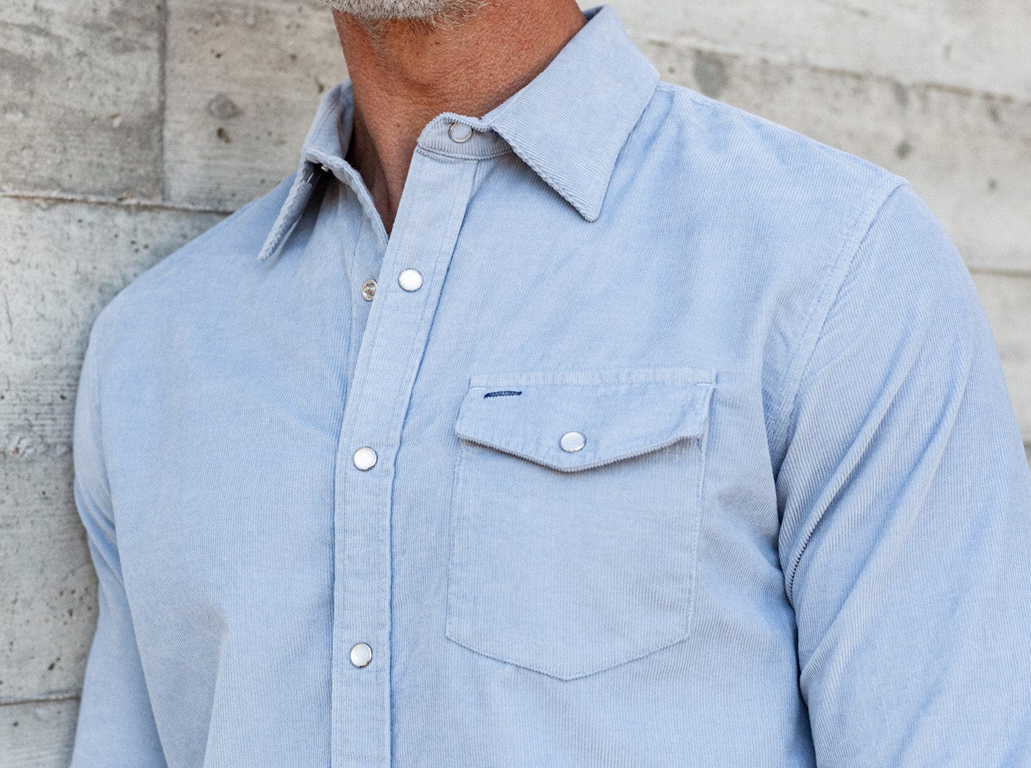 Corduroy Pearl Snap - Iced Blue