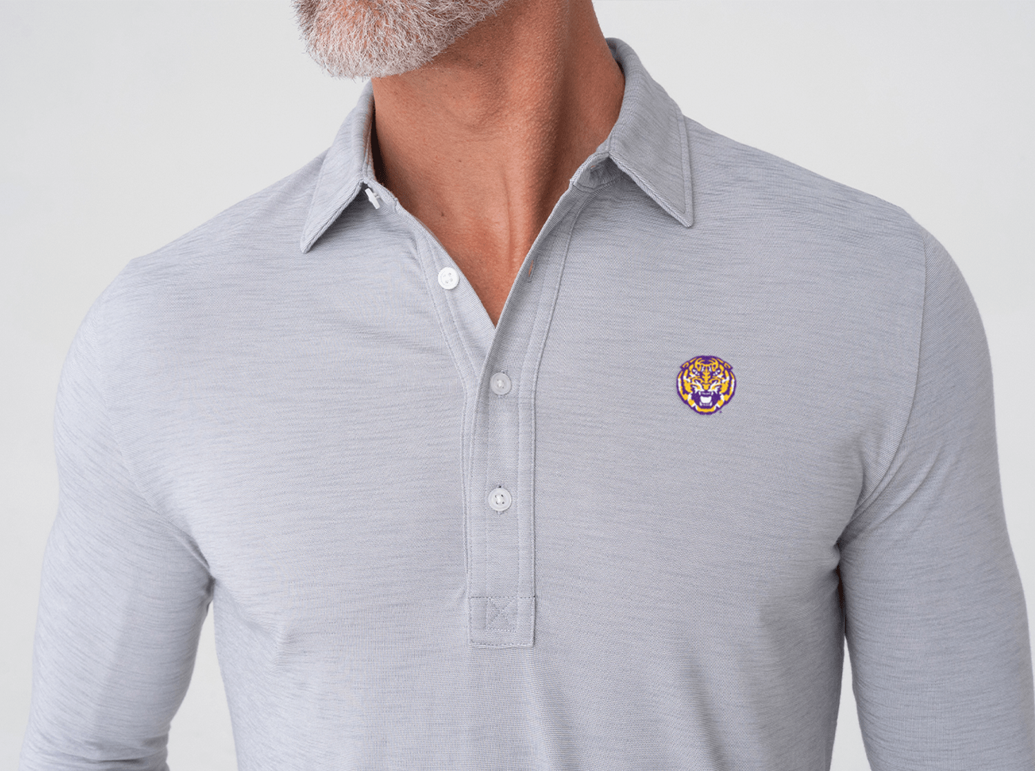 LSU Brrr Long Sleeve Range Polo - Tigerhead - Silverado