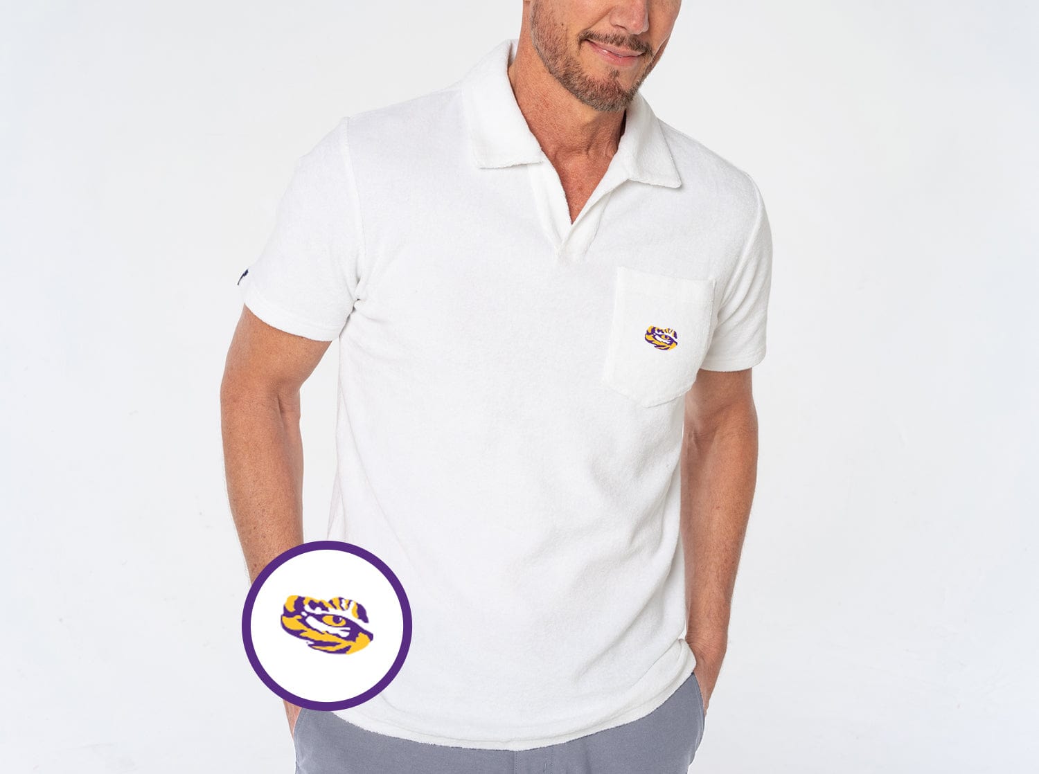 LSU Terrycloth Polo - Tiger Eye - White