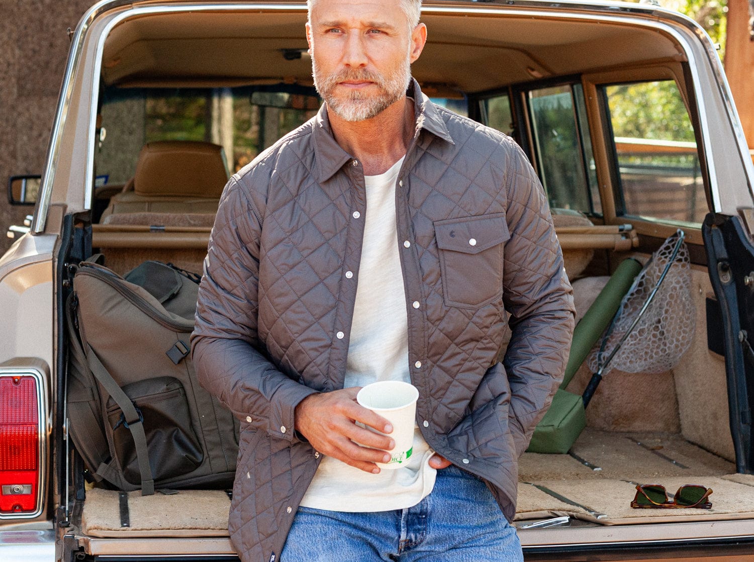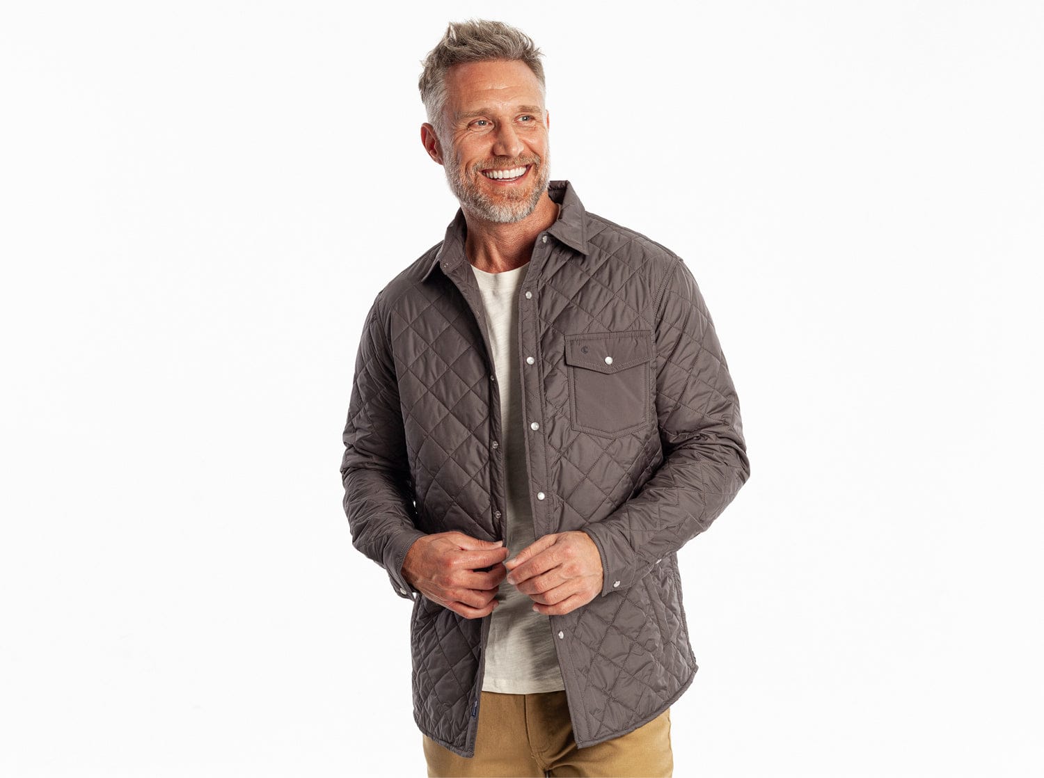 Meet the ultimate go-to layer for guys who want to look laid-back but still put together. Made from lightweight quilted polyester with just the right amount of warmth, it’s the perfect men’s shacket for layering over a tee, flannel or pearl snap. Soft, packable, and built for travel, this versatile piece is ready for whatever the day brings. Finished with subtle western-inspired pearl snaps, a vintage diamond quilt pattern, and our signature Criquet front pocket, it’ll become the layer you grab 9 times out of 10.
