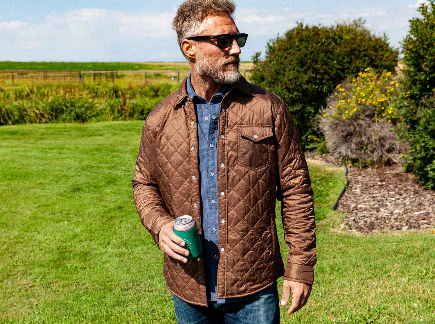 Lightweight, warm, and easy to pack, this men’s Quilted Shacket is built for year-round layering.