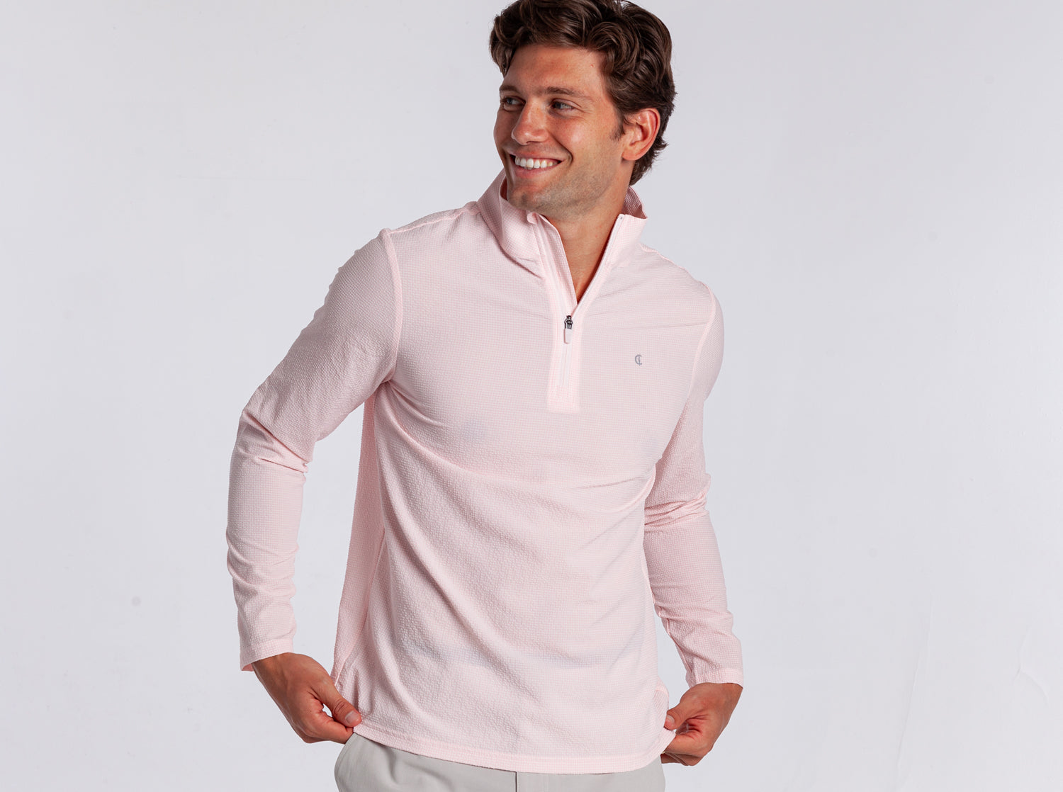 Time to spice up your Q-Zip game. Next time you hit the links, or the drinks, take some vintage-inspired style with you. The Seersucker Performance Pullover adds more texture to the traditional pullover while maintaining all the performance qualities you need, plus UPF 50. Perfect lightweight layer for transitional weather.