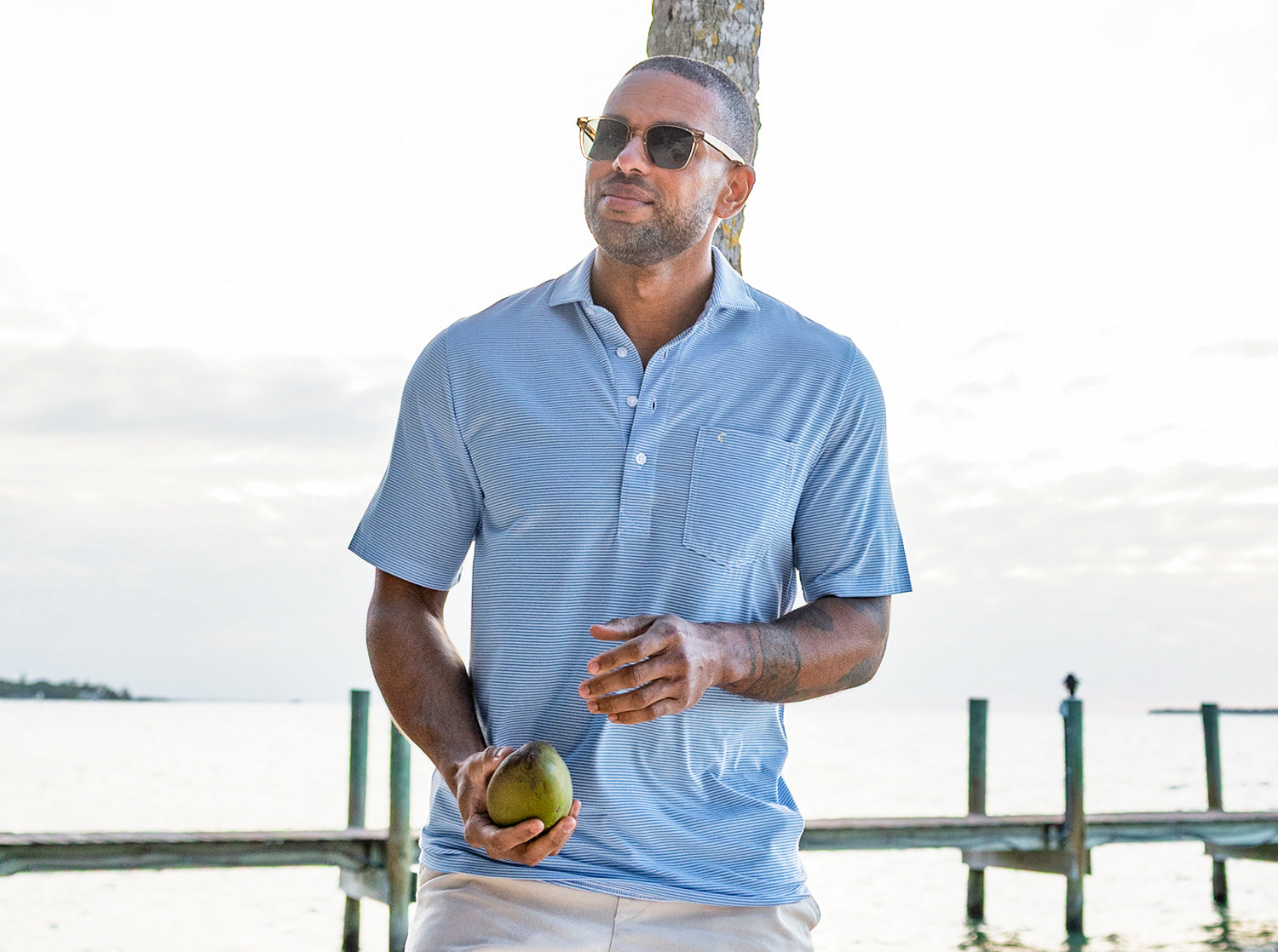 If you know anything about us, you know we take our collars very seriously, and the Spread Collar Polo is no exception. This new structured spread collar design gives this polo a more modern look, but still features our signature 4-button placket and left chest pocket for ample vintage vibes. Tack on our performance jersey fabrication, and you’ve got yourself a polo that works from conference rooms, to tee boxes, to pool tables.