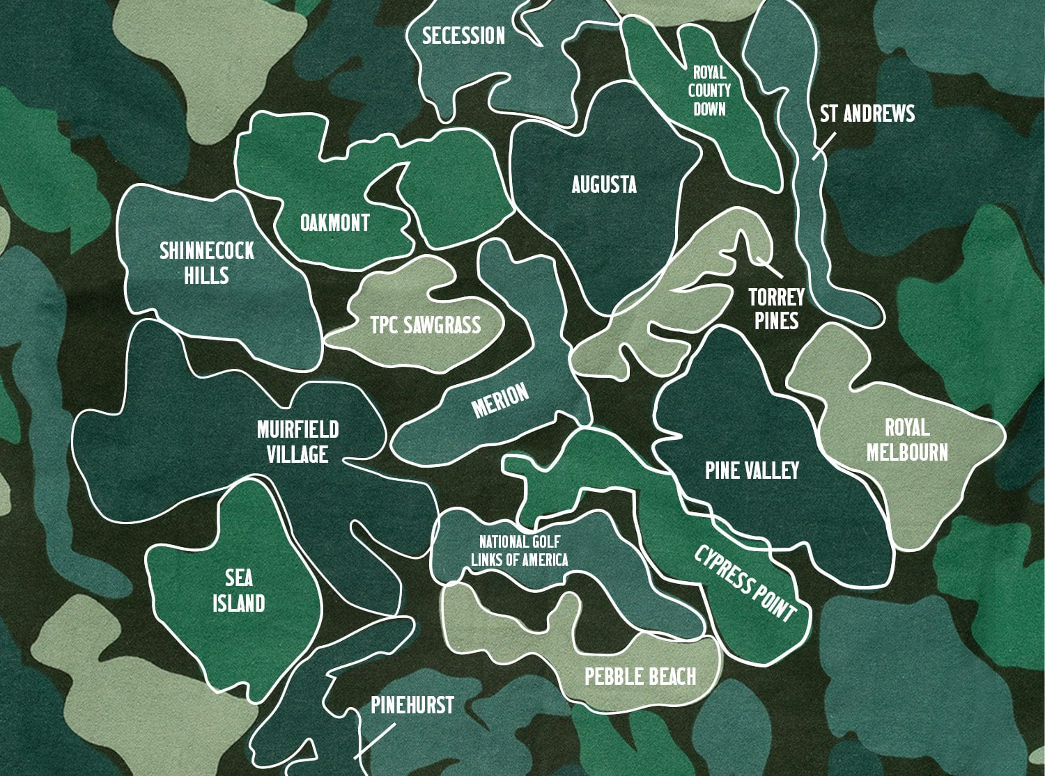 This isn't your basic camo! From Pebble Beach to St. Andrew's, each shape outlines a top golf course and is an homage to links everywhere. Our modern take on the old school chamois shirt can take you from the ranch to the boardroom.