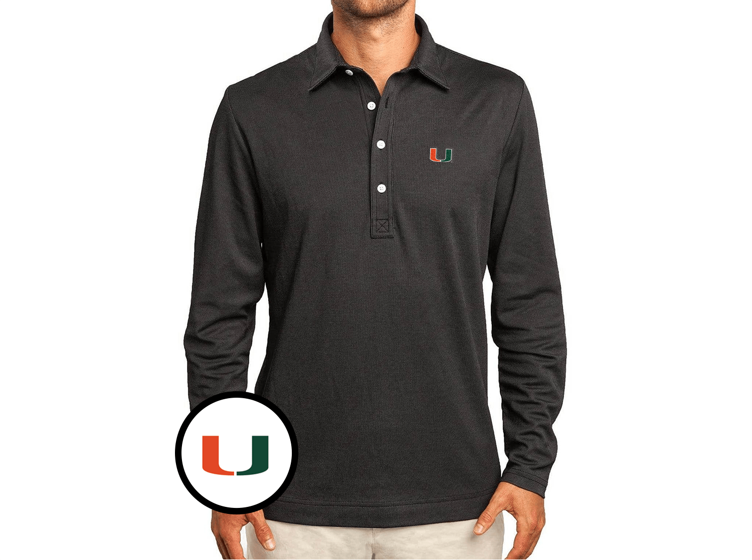 Miami Jacquard Long Sleeve Range Polo - U Icon - Black