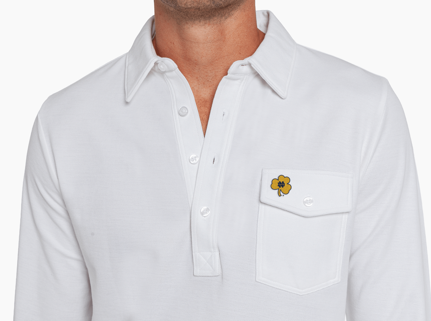 Notre Dame Long Sleeve Players Shirt - Shamrock - White