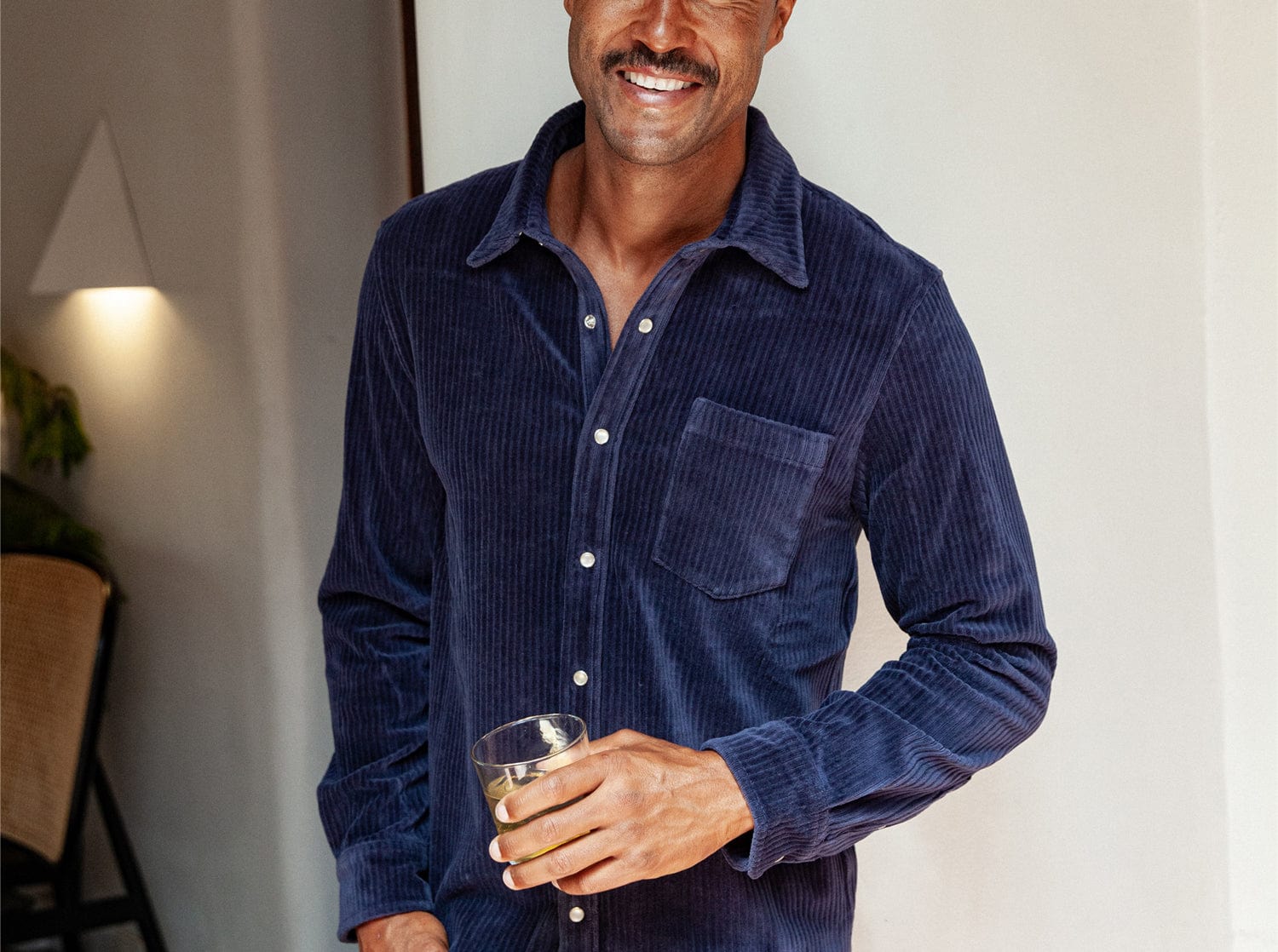 Become ensconced in velour, we assure you it is socially acceptable. Complete with pearl snaps and a patch pocket, this knit button down throws down some serious old-school vibes. Wear layered or solo and you'll literally be feeling yourself all day.