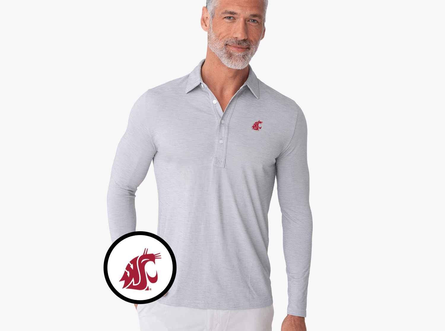 Washington State Brrr Long Sleeve Range Polo - Cougar - Silverado